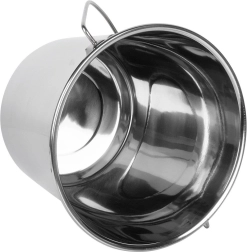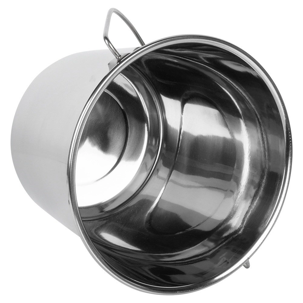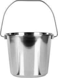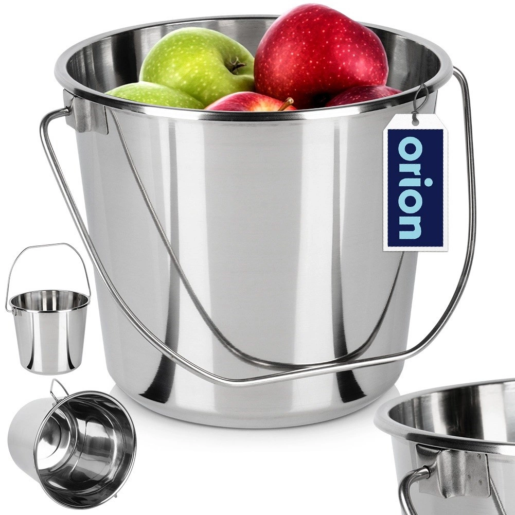 Le seau en acier inoxydable 5 l est un auxiliaire fiable pour transporter et stocker l’eau, le lait ou d’autres ingrédients. Il convient au contact alimentaire, se nettoie facilement et, grâce à son acier inoxydable résistant, il supporte des années d’utilisation. La poignée solide permet un transport confortable ainsi que la suspension.