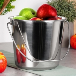 Pratique seau en acier inoxydable d’une capacité de 5 litres, adapté au contact alimentaire. Grâce à l’acier inoxydable de qualité, à sa poignée robuste et à son utilisation polyvalente à la maison, au jardin comme en restauration, il est idéal pour le travail quotidien.