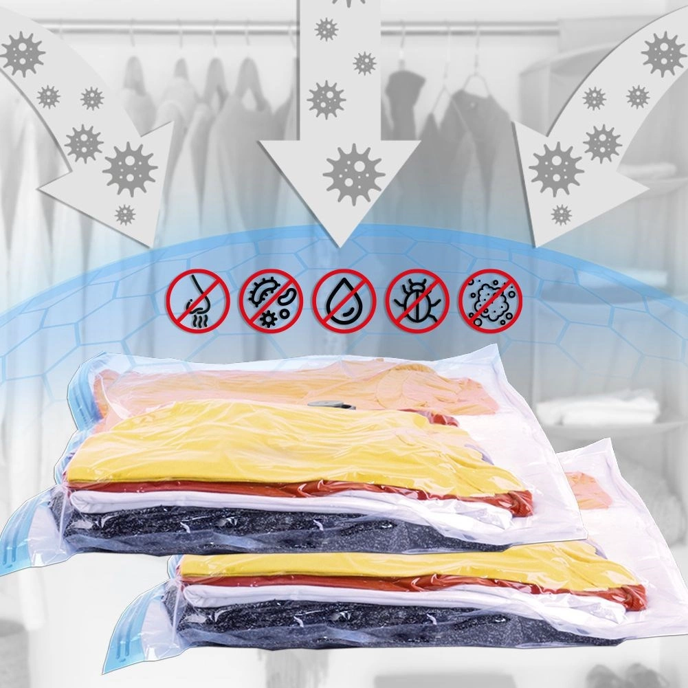Pratique, le sac sous vide de 60 × 80 cm économise jusqu’à 75 % d’espace tout en protégeant fiablement les textiles contre la poussière, l’humidité, les acariens et les mites. Fabriqué en film transparent résistant, avec fermeture zippée hermétique et valve anti-retour pour aspirer l’air facilement avec un aspirateur ou une pompe manuelle.