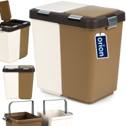 La poubelle à deux compartiments de la marque ORION facilite le tri au quotidien. Deux bacs séparés côte à côte permettent de répartir clairement plastiques, papier ou déchets mixtes. Chaque compartiment possède son propre couvercle avec bouton pratique pour une ouverture rapide, afin de jeter les déchets confortablement et de manière hygiénique.