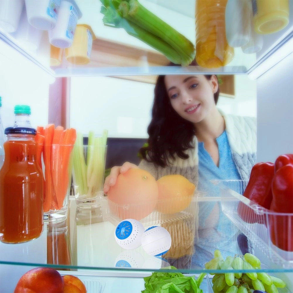 La forme sphérique de 5 cm de diamètre économise de la place. Vous pouvez poser les absorbeurs librement sur une étagère, dans la porte ou le bac à légumes.