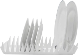 Pratique égouttoir à assiettes en plastique de dimensions 39 × 13 × 7 cm, pouvant accueillir jusqu’à 15 assiettes. Il est léger et résistant, maintient la vaisselle en position verticale pour un séchage rapide et un rangement clair, économise de la place sur le plan de travail comme dans les tiroirs et se nettoie facilement.