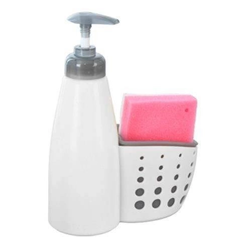 Distributeur pratique pour liquide vaisselle ou savon liquide avec porte-éponge amovible, pour garder votre cuisine et votre salle de bain parfaitement organisées. Grâce à sa capacité de 370 ml, vous remplissez facilement votre produit préféré et, avec la pompe pratique, vous dosez exactement la quantité nécessaire, sans gaspillage. Conception en plastique résistant en blanc et gris, support aéré pour un séchage rapide de l’éponge et dimensions compactes 15 × 7 × 20 cm font de cet ensemble un accessoire malin pour tout évier ou lavabo.