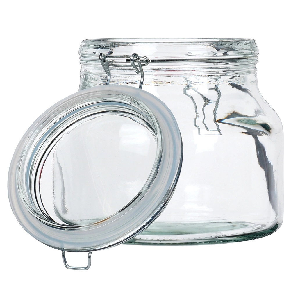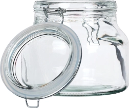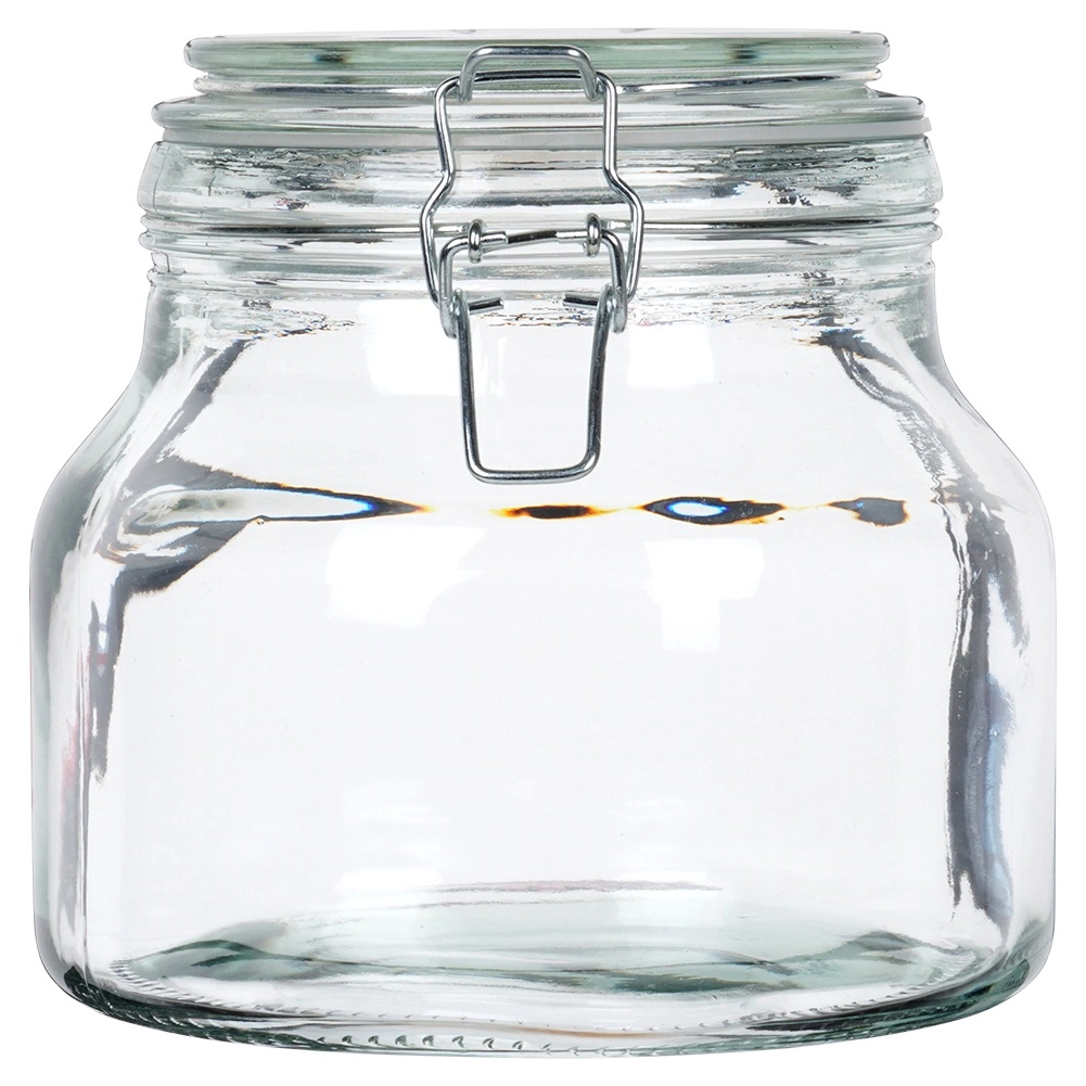 Le verre épais à large ouverture se remplit et se nettoie facilement, et convient au stockage des aliments secs comme aux conserves.