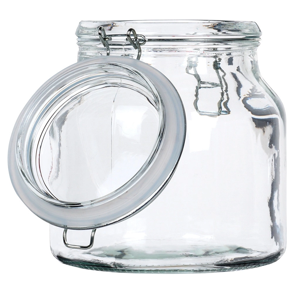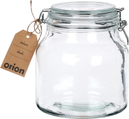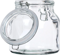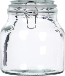 Le bocal en verre avec clip pratique et joint blanc de qualité garantit la fraîcheur maximale de vos ingrédients. Sa capacité de 2,4 l, son diamètre de 16 cm et sa hauteur de 18 cm offrent assez d’espace pour des aliments secs comme humides. Le verre robuste et le mécanisme métallique durable assurent une longue durée de vie et une fermeture sûre.