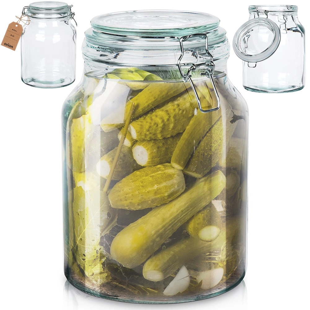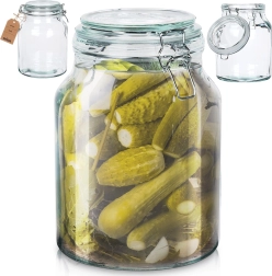 Le grand volume de 3,4 l et le verre robuste en font un récipient parfait pour les cornichons, la choucroute ou les pickles maison.