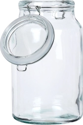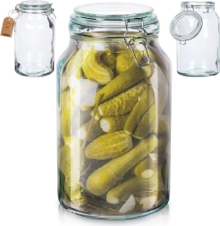 Bocal pratique en verre d’une capacité de 4,2 l avec clip métallique et joint en caoutchouc blanc, offrant une fermeture hermétique, un verre épais et une utilisation polyvalente pour le stockage comme pour la stérilisation/fermentation. Grâce au verre transparent, vous contrôlez facilement le contenu, et le large goulot facilite le remplissage et le nettoyage.