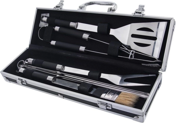 Set pratique pour tout amateur de barbecue : 9 ustensiles de grillade en acier inoxydable de qualité dans une élégante mallette. Contient tout le nécessaire pour retourner, servir et préparer des brochettes en toute facilité. Grâce aux longs manches, la manipulation près du grill est sûre et confortable. Acier inoxydable résistant, équipement complet dans une mallette, nettoyage facile au lave-vaisselle et usage polyvalent à la maison comme au jardin.