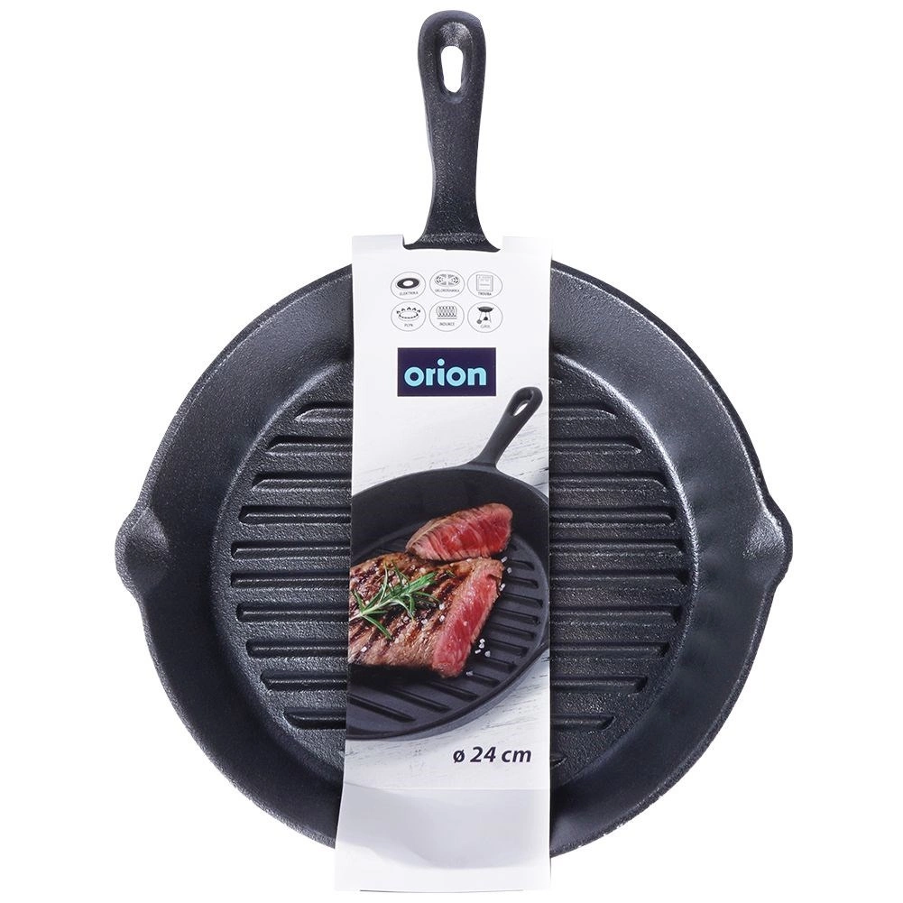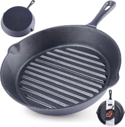 Poêle grill robuste en fonte de 24 cm de diamètre pour saisir parfaitement steaks, légumes et pommes de terre. Grâce à sa construction massive, elle accumule remarquablement la chaleur, imprime des marques de grill nettes et convient à tous les types de plaques, y compris l’induction, ainsi qu’au four. Deux becs verseurs facilitent l’écoulement des jus, sa haute résistance à la chaleur assure une longue durée de vie et son utilisation polyvalente se prête aussi bien à la maison qu’au barbecue ou au feu de camp.