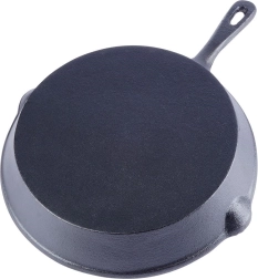 La poêle est polyvalente – adaptée au gaz, à l’électricité, à la vitrocéramique, à l’halogène et à l’induction, ainsi qu’au four, sur un barbecue ou directement sur un feu ouvert. Les deux becs verseurs pratiques et l’anse confortable facilitent la manipulation et le service.