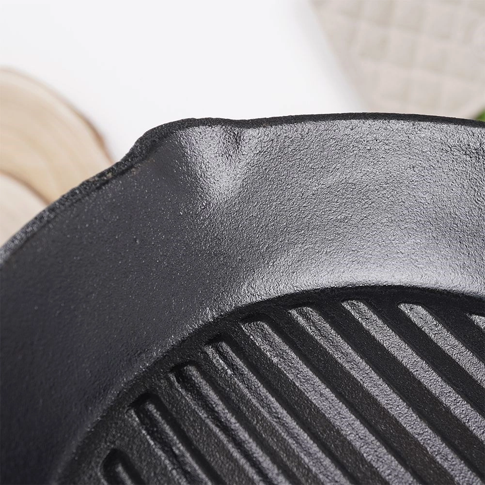 Le corps massif en fonte chauffe uniformément et maintient une température élevée pour une saisie idéale de la viande et une croûte croustillante.