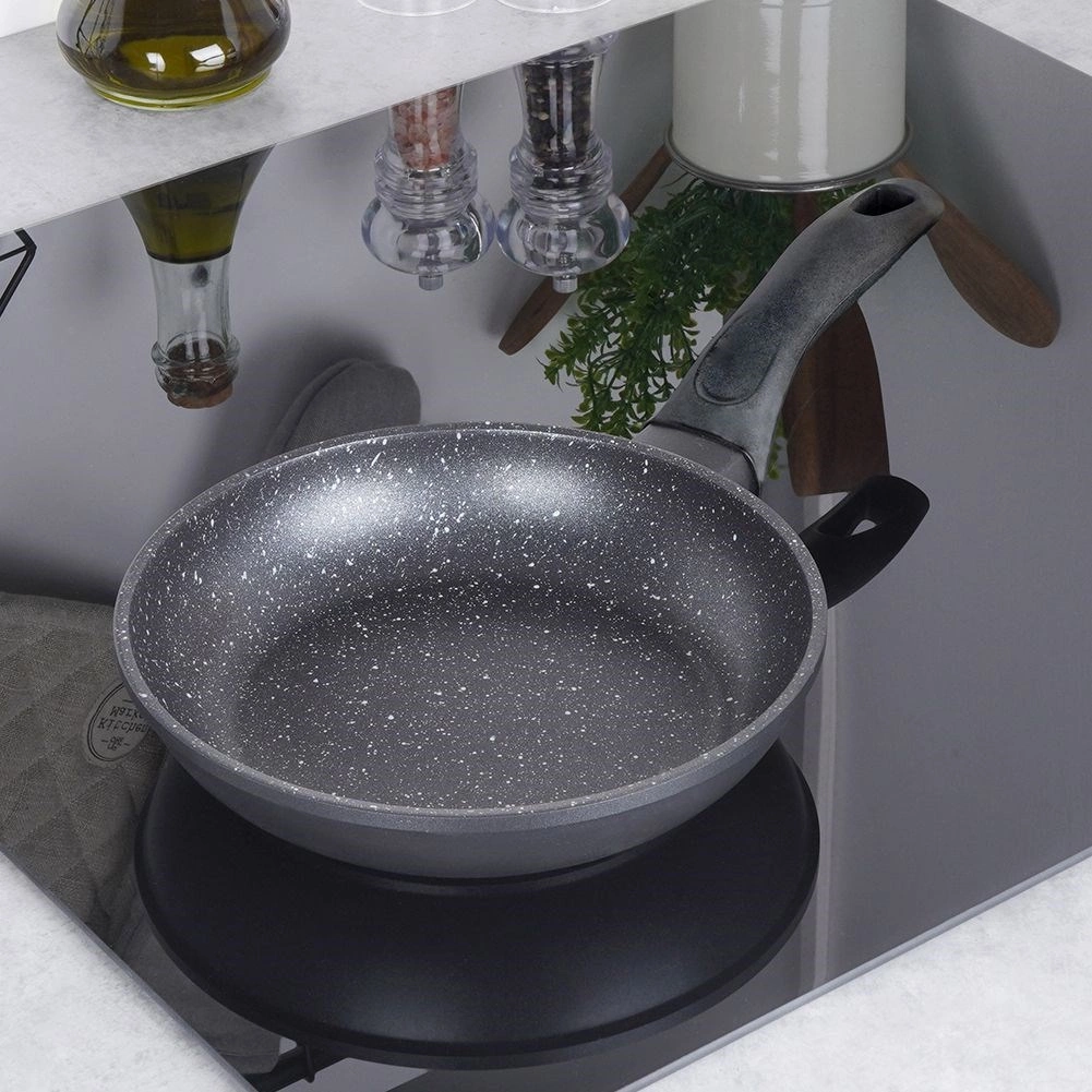 Poêle compacte en granit de 20 cm de diamètre pour la cuisson quotidienne. Offre un revêtement antiadhésif sans PFOA ni PTFE, une répartition uniforme de la chaleur et une cuisson rapide et économe. La poignée ergonomique ne chauffe pas et la poêle est compatible gaz, électricité, vitrocéramique, halogène et induction et passe au lave-vaisselle.