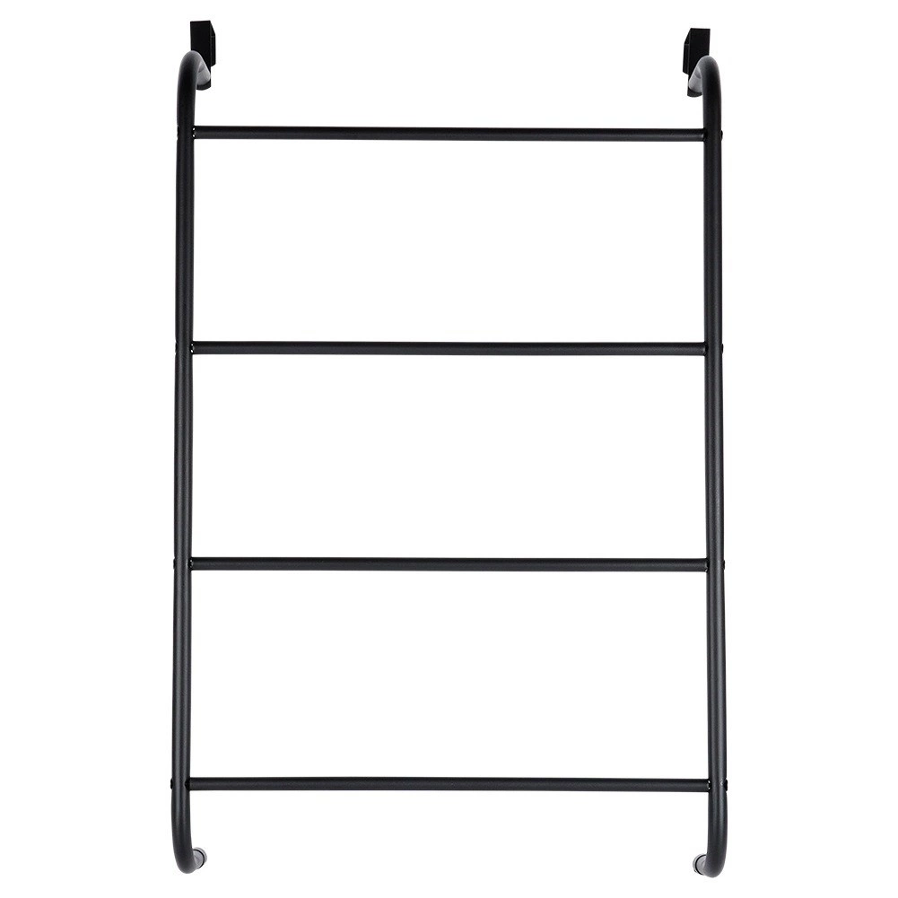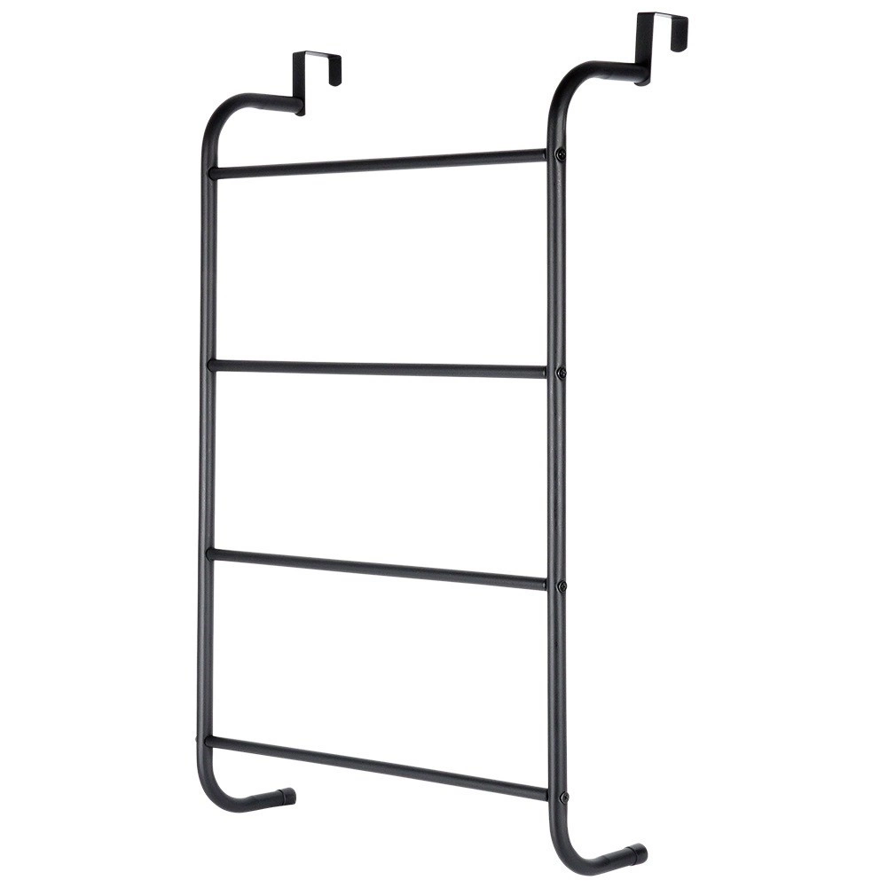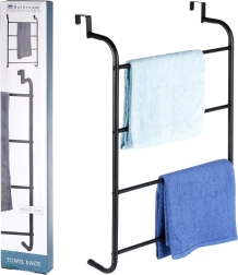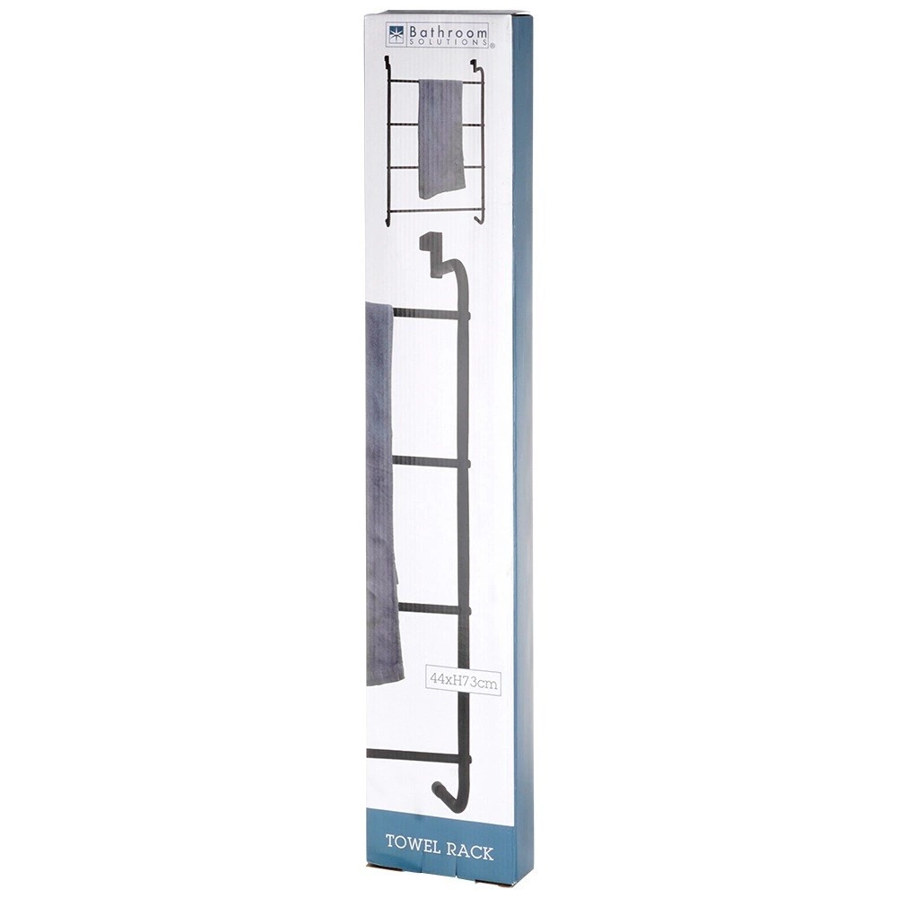 Optimisez l’utilisation de l’espace dans votre salle de bain avec ce porte-serviettes suspendu astucieux, qui se fixe simplement par-dessus le bord supérieur de la porte. Quatre traverses horizontales offrent suffisamment de place pour sécher et ranger les serviettes de toute la famille. La structure métallique au fini noir mat s’intègre aux intérieurs modernes et, grâce à sa conception résistante, supporte une utilisation quotidienne.