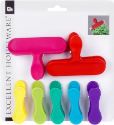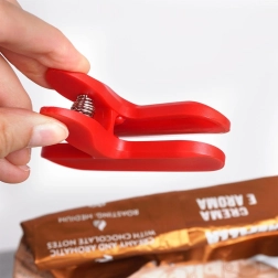 Cinq petites pinces (6,5 cm) pour les épices et les petits sachets, et deux pinces plus grandes (9 cm) pour les chips, les pâtes ou les céréales.