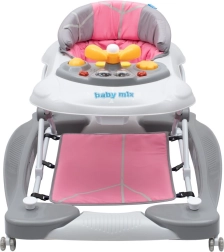Le youpala multimédia BABY MIX en coloris rose combine l’apprentissage de la marche et la stimulation ludique en un seul produit. La fonction 2‑en‑1 – youpala et balancelle permet un passage facile selon les besoins. Le siège ergonomique favorise une bonne posture, tandis que les roulettes avant en silicone pivotantes à 360° assurent un déplacement fluide et silencieux sans abîmer les sols.
