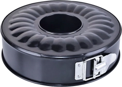 Moule rond universel avec deux fonds interchangeables, idéal pour réussir aussi bien les gâteaux que les kouglofs. Grâce aux bords à charnière, les pâtisseries se démoulent facilement, et le revêtement antiadhésif garantit une cuisson propre sans beurrer ni fariner. L’ensemble comprend un fond plat pour un moule à gâteau de 28 cm de diamètre et 7 cm de hauteur, ainsi qu’un fond avec cheminée pour un moule à kouglof de 28 cm de diamètre et 8,5 cm de hauteur. La structure résistante supporte jusqu’à 200 °C et convient aux fours à gaz comme électriques.
