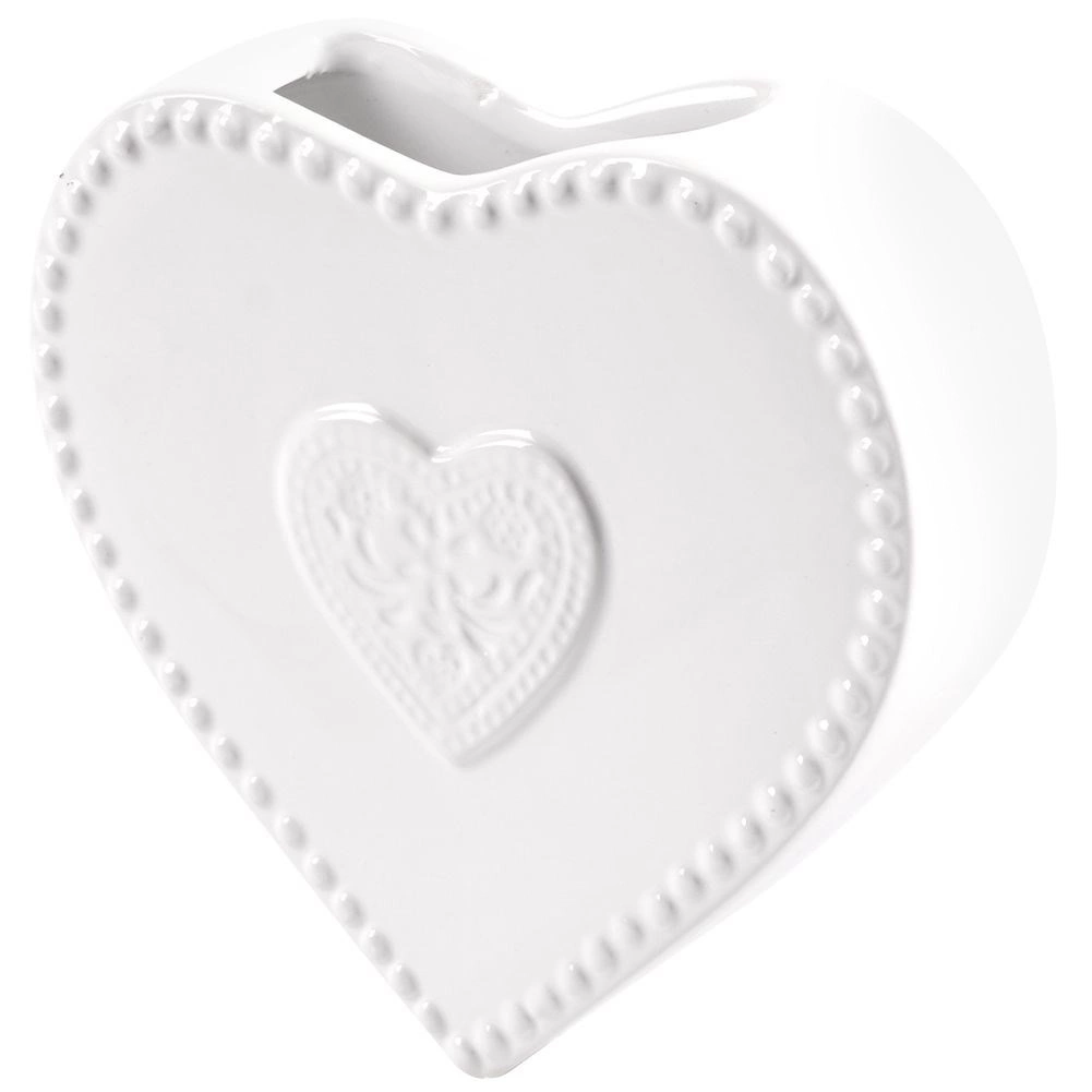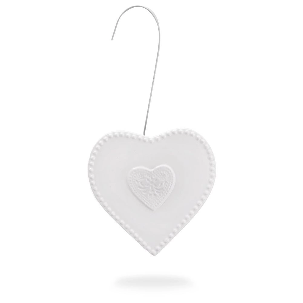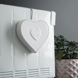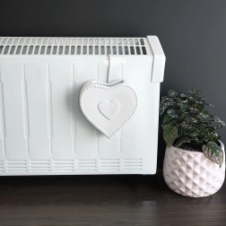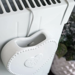 Une glaçure blanche, un bord nacré et un motif de cœur en relief apportent une touche élégante au radiateur et à la pièce.