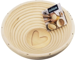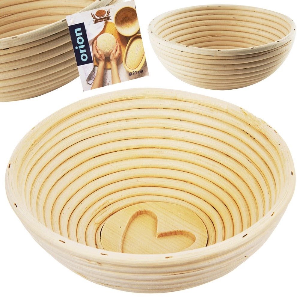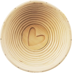Banneton rond en rotin de 21 cm de diamètre avec cœur décoratif, qui aide votre pâte à bien lever et à conserver la forme d’une miche traditionnelle. En rotin naturel beige pour une levée homogène et des motifs spiralés typiques. Idéal pour une miche d’environ 1,2 kg (env. 600 g de farine), parfait pour la boulangerie maison et professionnelle.