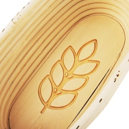 Pratique, le banneton ovale en rotin naturel est idéal pour la levée de pâte à pain d’un poids d’environ 1 kg (env. 500 g de farine). La structure intérieure cannelée et le motif d’épi au fond créent sur le pain une empreinte décorative, tandis que les parois plus hautes maintiennent fiablement la pâte pour qu’elle ne s’étale pas après le démoulage sur la plaque.