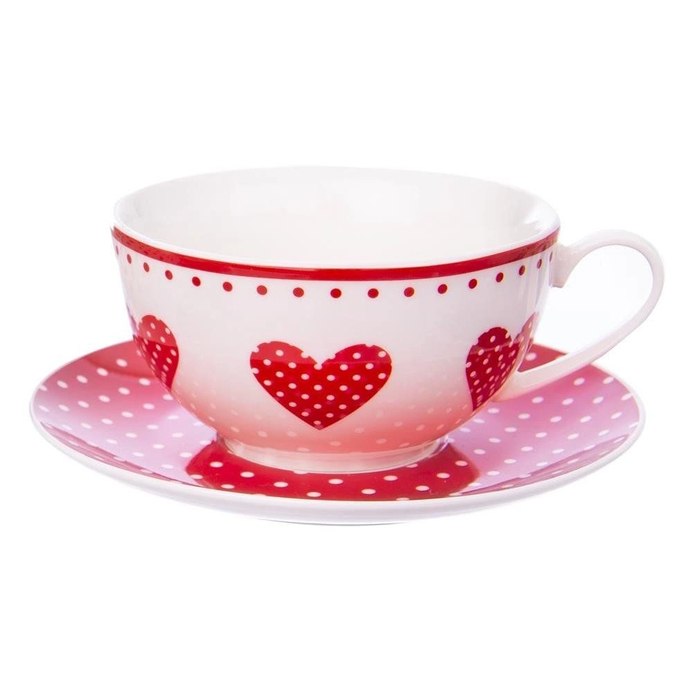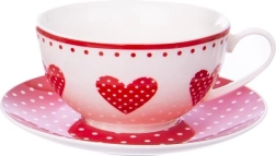 Élégant service à thé « tea-for-one » en porcelaine de qualité combinant une théière 380 ml, une tasse 340 ml et une soucoupe 15 cm. Le fond blanc est orné de cœurs rouges et de pois romantiques, la théière possède un couvercle pratique et les deux éléments un anse confortable. Compatible lave-vaisselle et micro-ondes – idéal pour le rituel quotidien ou comme cadeau original.