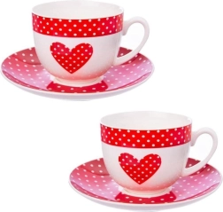 Dégustez votre café, thé ou infusion préférée avec ce set intemporel de deux tasses et leurs soucoupes. L’association du blanc et du rouge avec un décor à pois et un motif de cœur apporte une touche romantique et élégante – parfaite pour un usage quotidien comme pour une table de fête.
