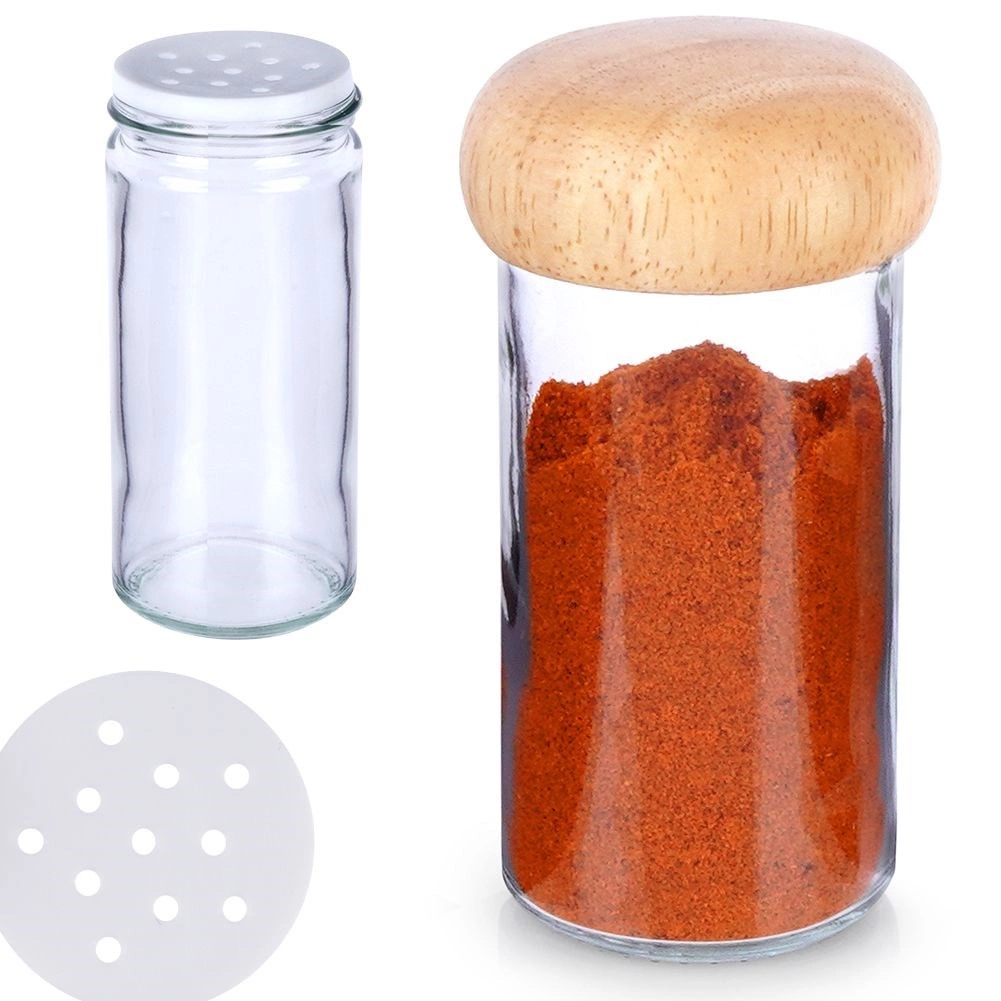 Ce pot à épices en verre avec tamis allie élégance et grande fonctionnalité. Le verre transparent facilite le contrôle de la quantité, le tamis amovible assure un dosage confortable et uniforme, et le couvercle à vis en bois protège le contenu de l’humidité et conserve la fraîcheur des arômes.