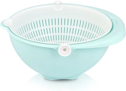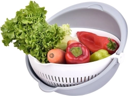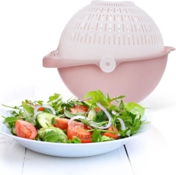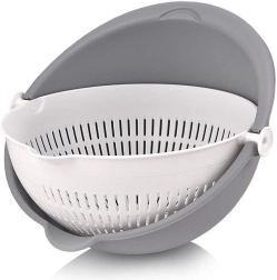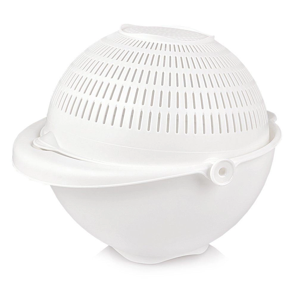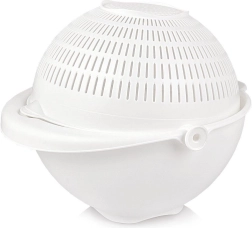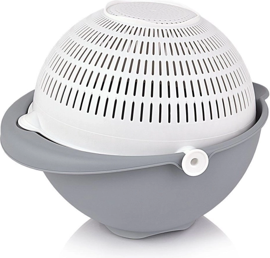 Découvrez une solution intelligente pour les tâches quotidiennes en cuisine. L’égouttoir rotatif logé dans le bol permet un rinçage rapide et une évacuation de l’eau sans transvaser les aliments. En l’inclinant, l’égouttoir reste horizontal, gardant le contenu en sécurité tandis que l’eau s’écoule dans le bol extérieur.