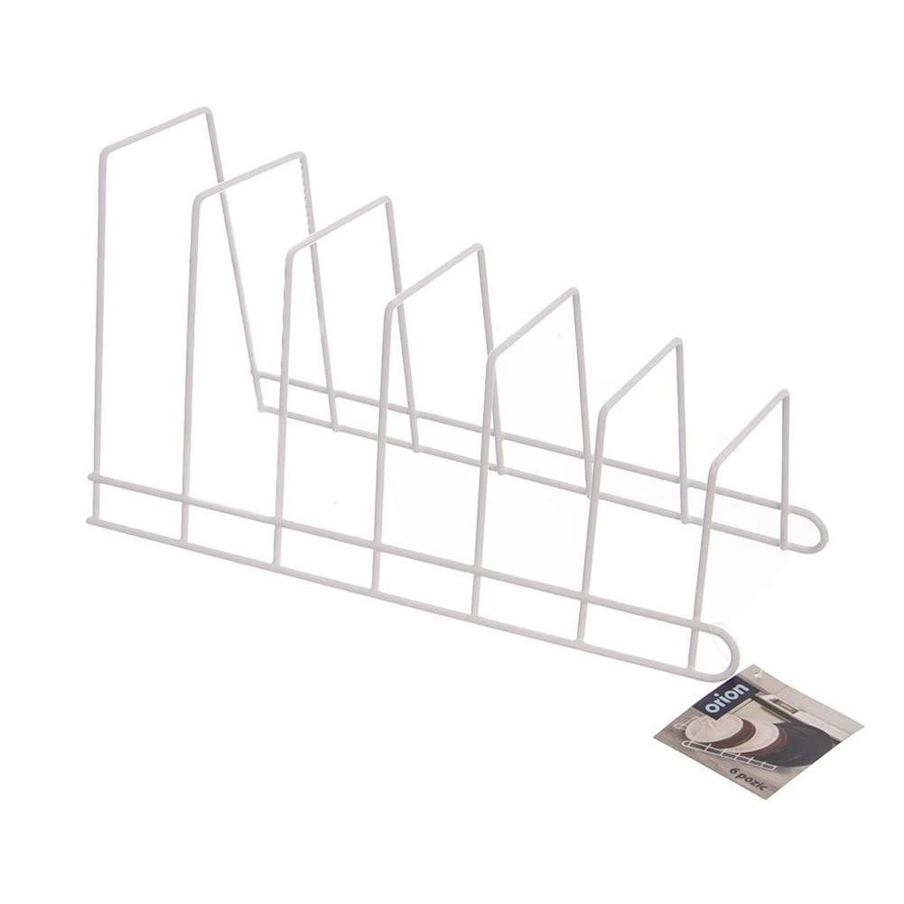 Gardez l’ordre dans la cuisine grâce à ce support compact avec 6 emplacements. La structure filaire ouverte maintient couvercles, assiettes plates et planches bien visibles et rapidement accessibles, tout en empêchant leur déplacement et leur détérioration. Placez-le sur le plan de travail, dans un placard ou dans un tiroir profond.