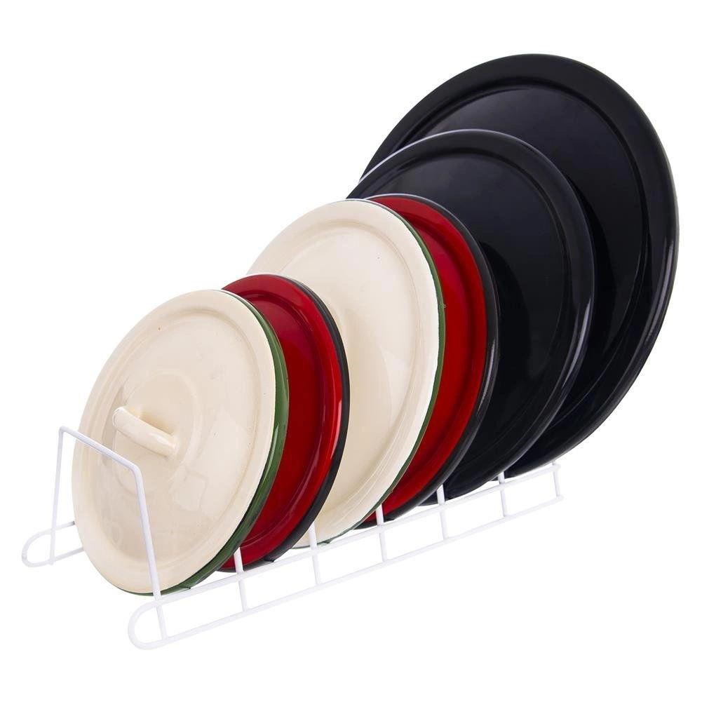 Support blanc en métal pour couvercles, assiettes et planches 34 × 17 × 18,5 cm
