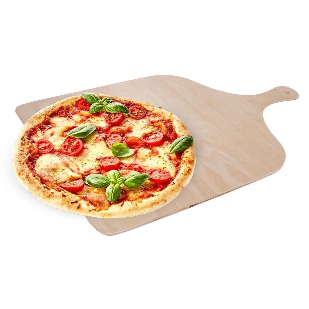 Pelle à pizza en bois pratique pour un transfert, une découpe et un service faciles. Grâce à sa conception en bois légère et résistante, vous insérez et retirez la pizza du four en toute simplicité. Elle possède une large surface plane, une poignée pratique avec œillet de suspension et un format universel de 41,5 × 29,5 × 0,5 cm. Convient aussi pour le pain, les tartes et autres pâtisseries.