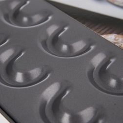 Grâce à la disposition dense des cavités, vous cuisez une grande quantité de croissants d’un seul coup, avec une taille et une forme uniformes.
