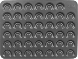 Ce moule en tôle de haute qualité vous permet de cuire rapidement et efficacement de petits croissants avec une forme parfaitement régulière. Le revêtement antiadhésif réduit l’usage de matière grasse, évite que ça n’attache et facilite le démoulage sans abîmer les pâtes délicates. Grâce à ses dimensions 42 × 32 × 0,7 cm et à ses 41 cavités, vous économisez temps et énergie.