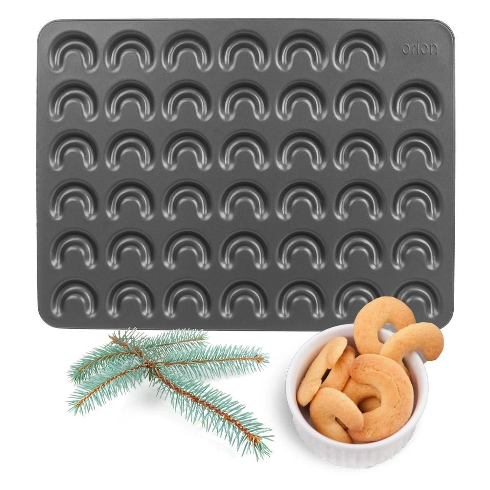 Le moule est en acier au carbone, garantissant une répartition homogène de la chaleur et des résultats fiables. Idéal pour croissants, biscuits et bouchées salées. Pour un résultat optimal, nous recommandons de graisser légèrement la surface avant la cuisson. Produit original de la marque ORION, conforme aux normes européennes.