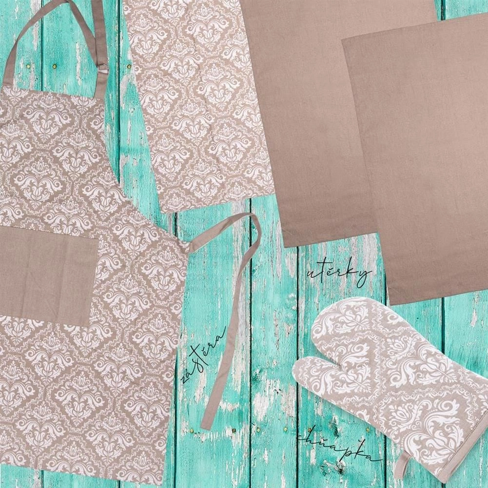 Découvrez le confort et la protection en cuisine avec ce tablier en coton de qualité, dimensions 71 × 86 cm. Sa coupe universelle avec longues cordelettes permet un ajustement facile à toute morphologie, et le motif damassé beige apporte une touche d’élégance à votre cuisine.