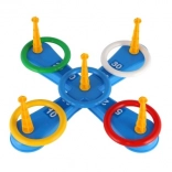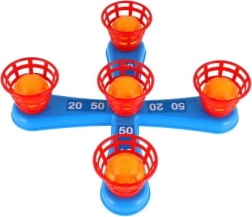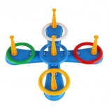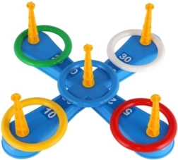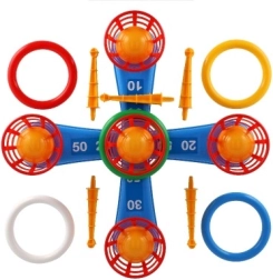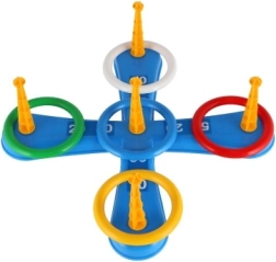 Ce jeu amusant est idéal pour les plus petits enfants. Il comprend une croix avec cinq pointes sur lesquelles les enfants lancent des anneaux en plastique colorés dans le but de gagner des points. Chaque lancer réussi, avec un anneau sur une pointe, rapporte des points, encourageant la compétitivité et la précision. La deuxième variante du jeu fonctionne sur le même principe, mais les pointes ont été remplacées par des paniers pour les balles, apportant un nouveau défi.