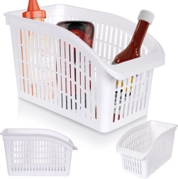 Cet organiseur polyvalent aide à ranger clairement les bouteilles de sauces, fruits, légumes et autres aliments dans le réfrigérateur, le garde-manger ou le placard. Sa structure ouverte et perforée assure une circulation de l’air pour une meilleure fraîcheur et un contrôle visuel rapide du contenu. Le matériau robuste mais léger convient à une utilisation quotidienne.