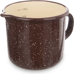 Ce mug émaillé marron moucheté beige au design rétro facilite la cuisine et la pâtisserie au quotidien. Grâce au bec verseur pratique, le versement est aisé, et la graduation interne permet de mesurer précisément liquides et ingrédients secs sans autre ustensile. L’anse solide assure une manipulation sûre et confortable.