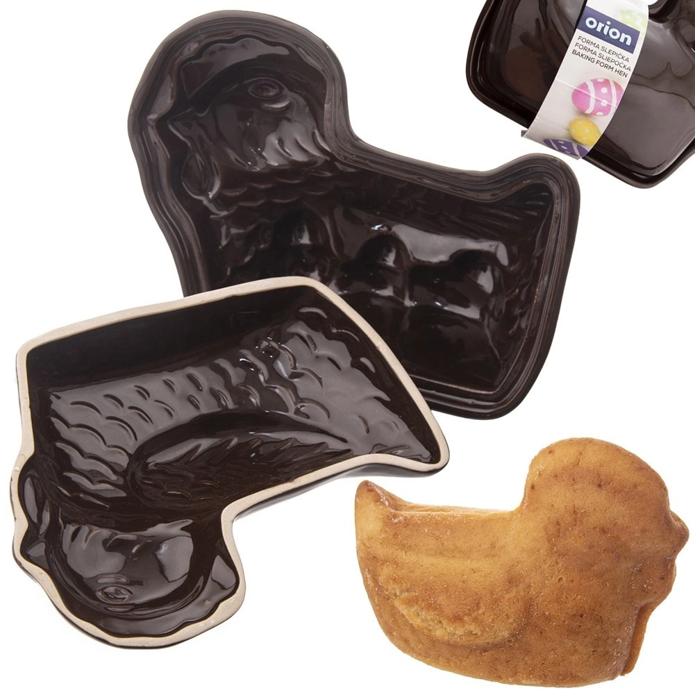 Moule à pâtisserie traditionnel en céramique en forme de poussin pour de jolis desserts de Pâques. En céramique émaillée de couleur marron, qui conduit parfaitement la chaleur, est résistante et, avec un bon entretien, dure des années. Idéal pour kouglofs, génoises, pâtés et gelées. Compatible four et micro-ondes.