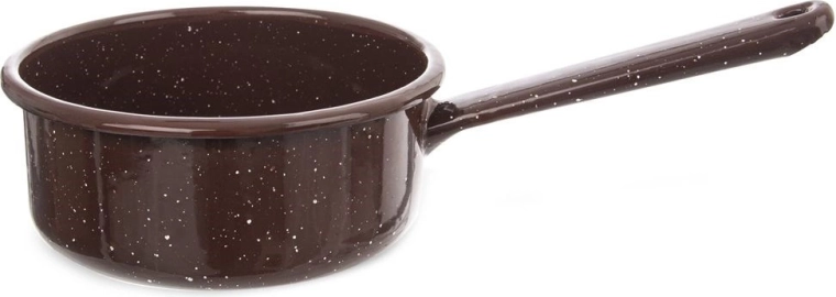 Casserole robuste en acier émaillé de couleur marron élégante avec décor moucheté, un excellent choix pour la cuisine quotidienne. Grâce à sa forme plus profonde et à son bord pratique, elle est parfaite pour préparer des sauces, du lait, des bouillies et des soupes. L’émail est un matériau respectueux de la santé et sûr même pour les personnes allergiques.