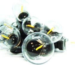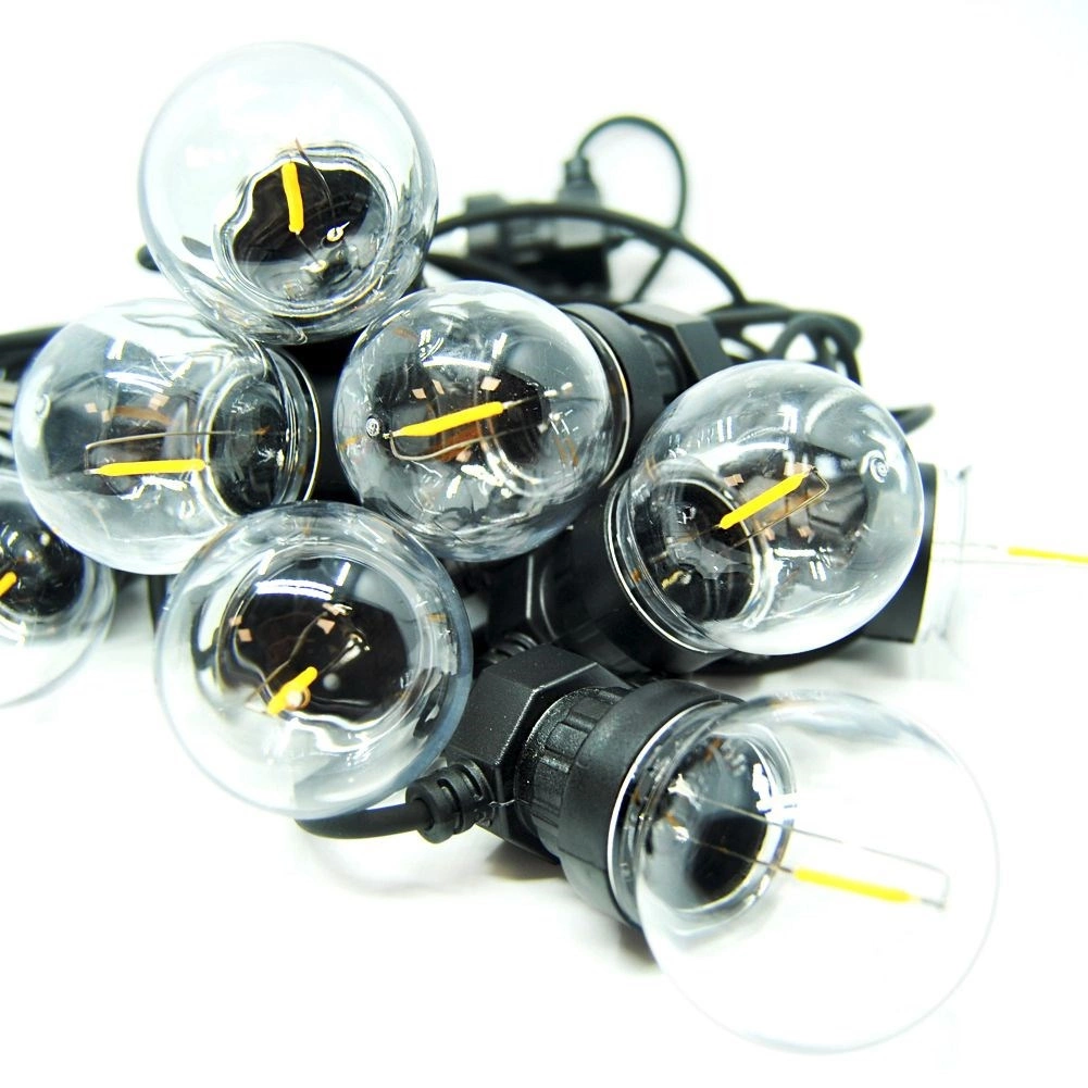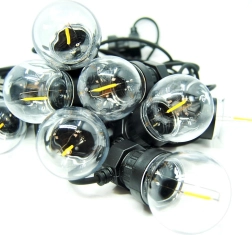 Les ampoules sphériques à filament LED diffusent une lumière chaude agréable qui souligne l’atmosphère d’une soirée sur la terrasse ou d’une fête au jardin.