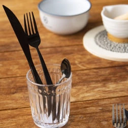 Élégant service de couverts pour 6 personnes en noir moderne avec finition PVD. Comprend 24 pièces pour le quotidien comme pour les occasions spéciales. Acier inoxydable de haute qualité, design intemporel et emballage cadeau en font un excellent choix pour chaque foyer.