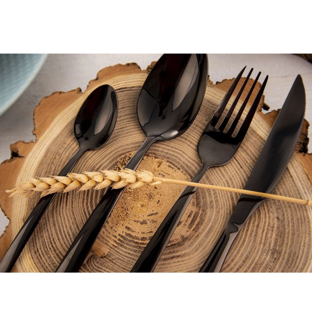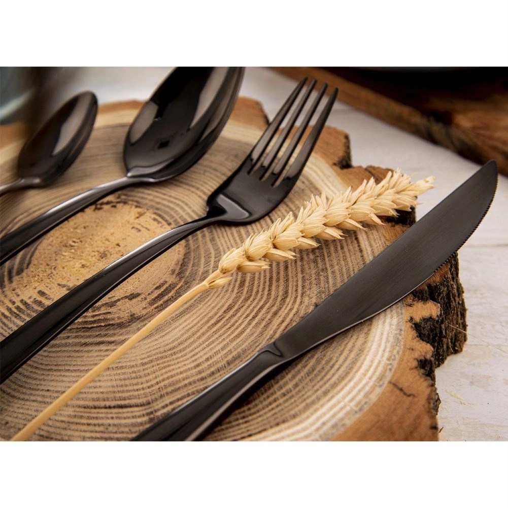 Couverts en acier inoxydable noir de luxe pour 6 personnes, 24 pièces ORION Black Luxury