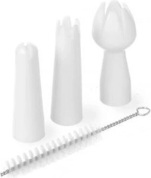 Le set comprend 3 embouts différents pour des décors élégants sur desserts, gâteaux et boissons. Faciles à interchanger et à laver.