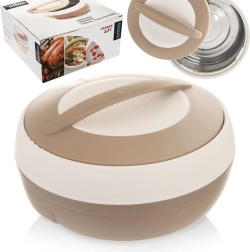 Bol isotherme pratique de 2,5 l pour conserver des plats chauds et froids. Grâce à la paroi intérieure en acier inoxydable et à la fermeture facile par couvercle avec poignée, il garde les aliments chauds jusqu’à 2 heures. Léger, résistant et idéal pour le transport de déjeuners, soupes et desserts. Produit original de la marque ORION.