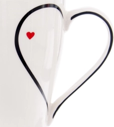 La porcelaine blanche est rehaussée d’un fin liseré noir et d’un petit cœur rouge. Son design minimaliste s’intègre dans toute cuisine et fait plaisir comme cadeau.