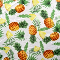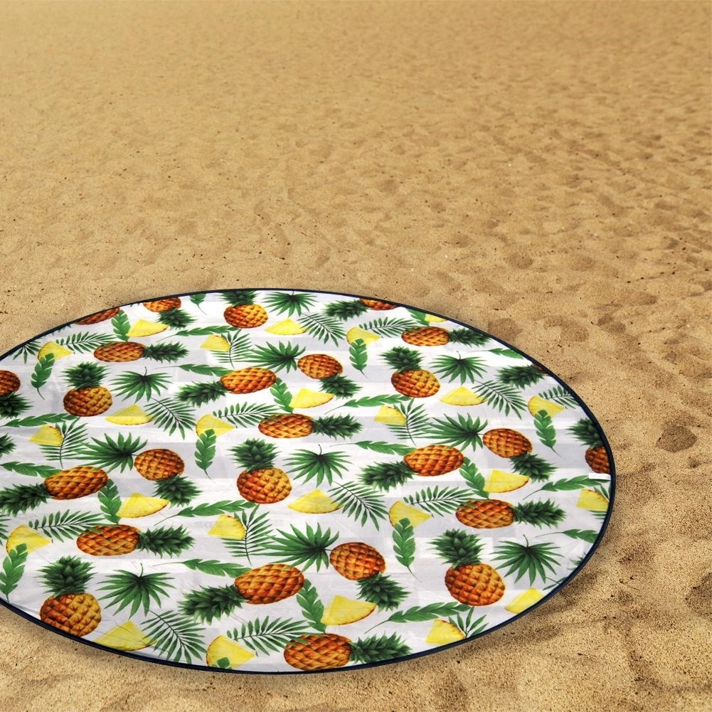 La forme ronde et le motif d’ananas avec feuilles de palmier apportent une ambiance estivale fraîche à vos journées à l’eau ou au parc.