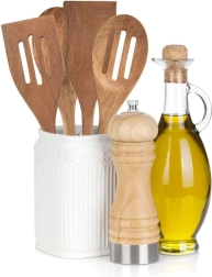 Le manche ergonomique partiellement laqué en blanc tient bien en main et, grâce à l’orifice de suspension, la cuillère se range facilement sur une barre de cuisine. Le bois est respectueux des surfaces téflon, céramique et granit, il ne raye donc pas la vaisselle. Le lavage au lave-vaisselle n’est pas recommandé – pour une plus longue durée de vie, un rinçage manuel et un séchage suffisent.
