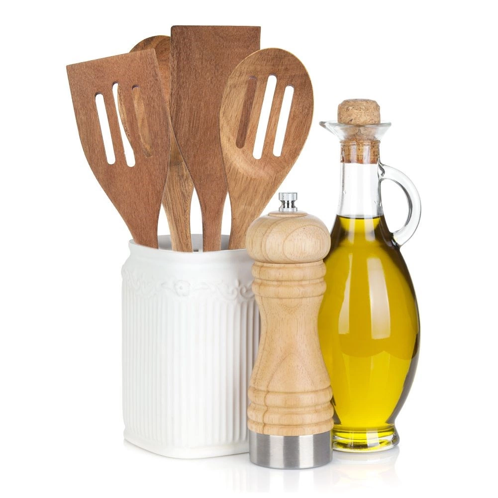 La tête en bois avec fentes longitudinales ne raye pas les surfaces téflon, céramique ni granit et permet un égouttage rapide des liquides.