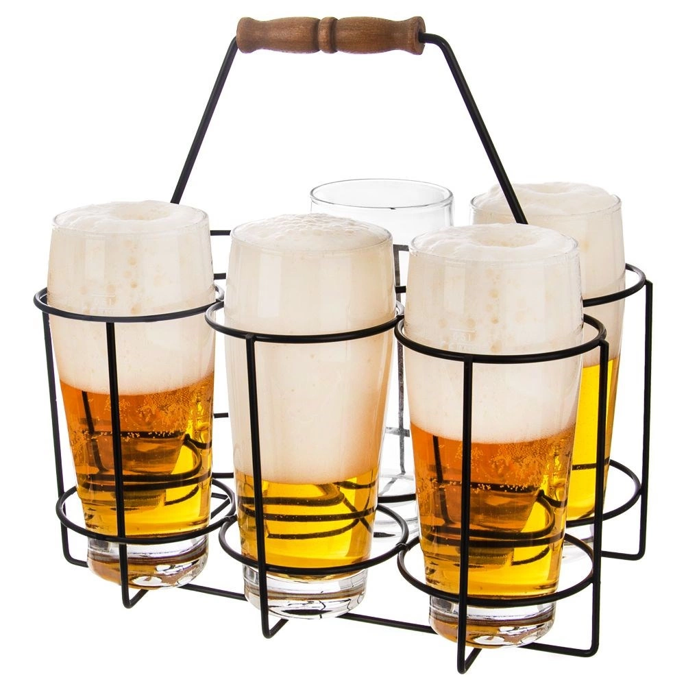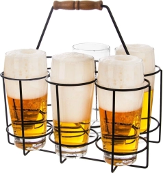 Pratique porte-bouteilles et verres en métal avec 6 compartiments séparant en toute sécurité les boissons et évitant les chocs. Grâce à sa structure métallique robuste et à sa poignée en bois confortable, transportez facilement jusqu’à 6 bouteilles – idéal pour la bière, les barbecues, le jardin et les sorties. Look élégant et stabilité fiable pour un usage quotidien.