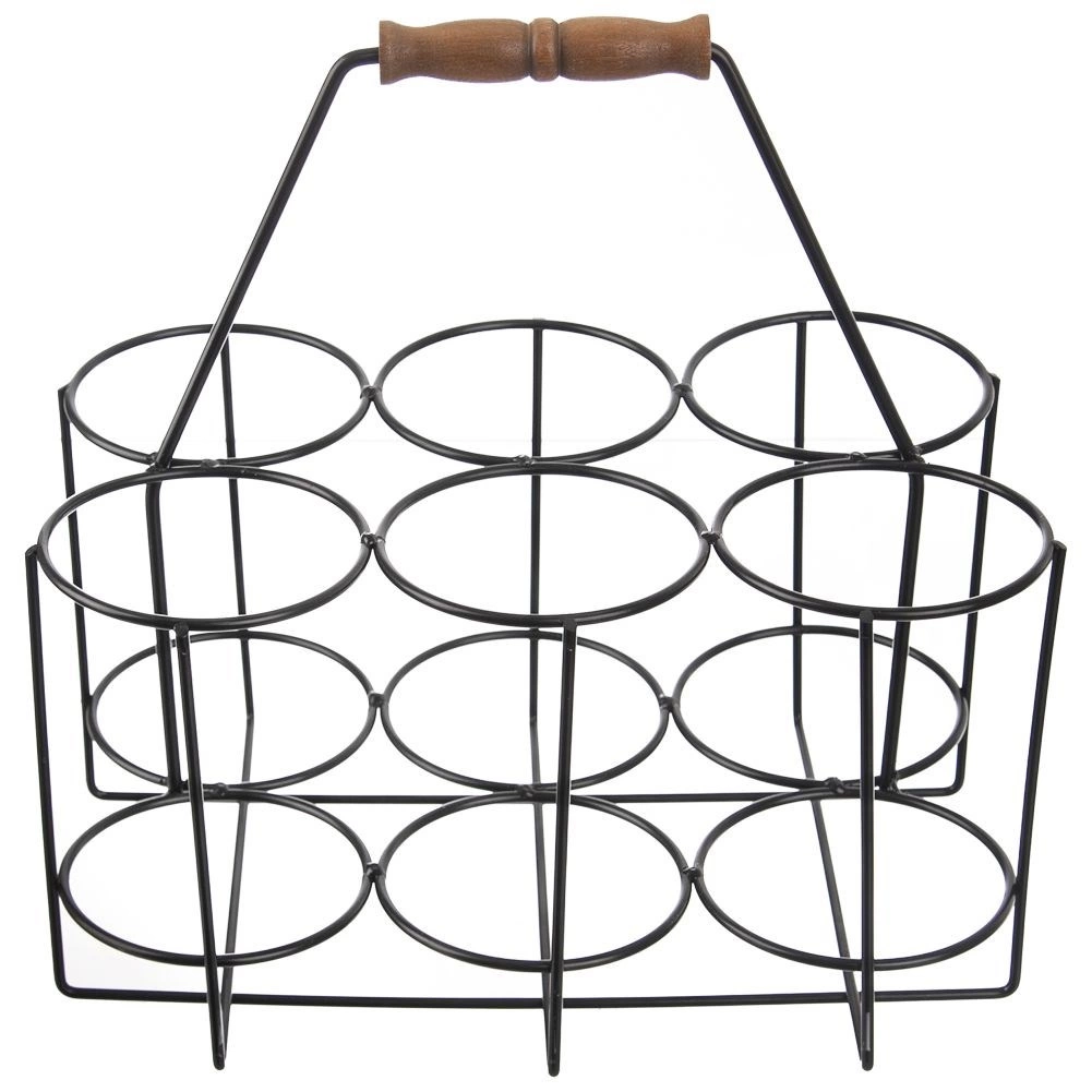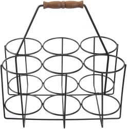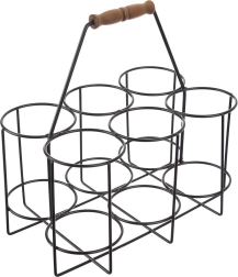 Panier métallique robuste pour transporter bouteilles ou verres, offrant une organisation sûre et une manipulation aisée. Six anneaux porte-bouteilles séparés maintiennent fermement les contenants en place, tandis que la poignée en bois assure une prise confortable. Une excellente solution pour la maison, le jardin, la terrasse et le service des boissons lors des barbecues.